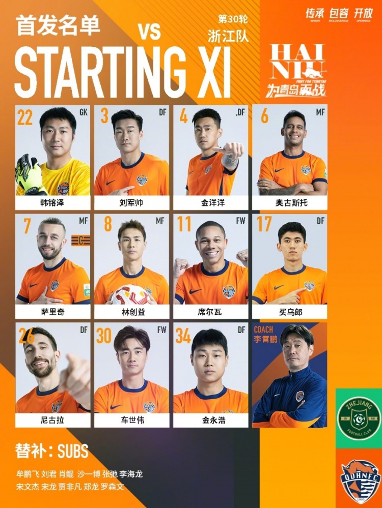 > 客场对阵浙江队联赛首发名单!🔥🔥🔥