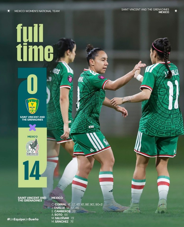 寰宇杯预选赛墨西哥女足14-0狂胜,科拉尔一东说念主打进7球