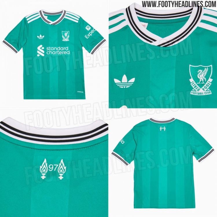 利物浦2025/26赛季第三球衣:薄荷绿主颜色,队徽复刻1987/92神志