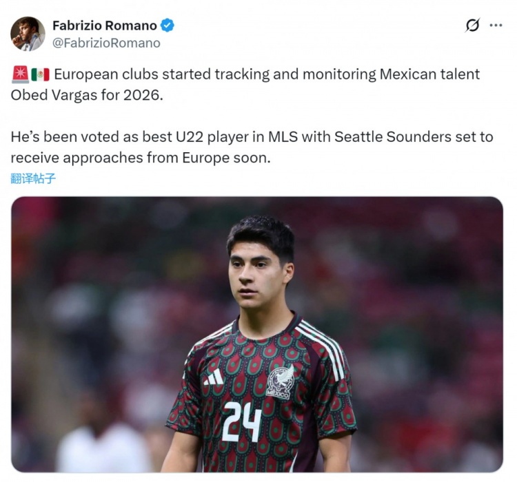 罗马诺表现,遵守于西雅图海湾东谈主的奥贝-巴尔加斯受到外界的顺心,欧洲俱乐部运行跟踪执行他的发达,将其列为2026年的潜在引援揣摸打算。