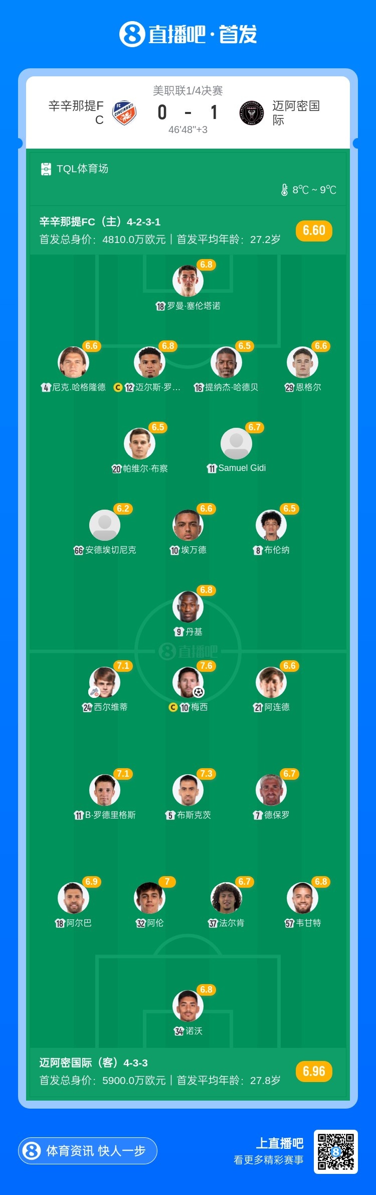11月24日讯 北京手艺6:00,好意思职联1/4决赛辛辛那提FCvs迈阿密国外。上半场,梅西头球破门!西尔维蒂献助攻。半场抵制,迈阿密国外暂时1-0杰出辛辛那提FC。