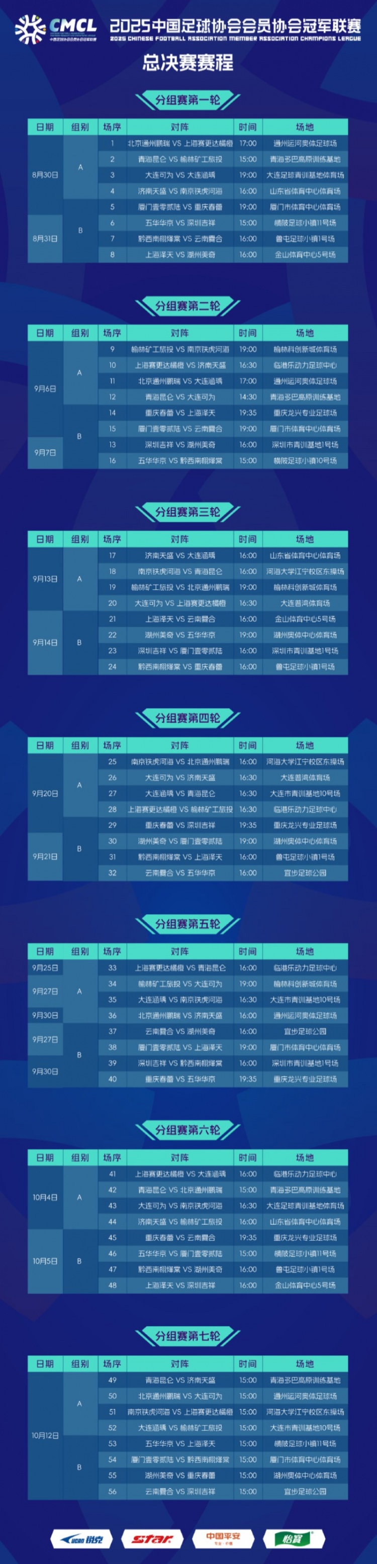 8月21日讯 中冠官方公布总决赛分区轮回赛赛程,比赛将于8月30日-10月12日进行。