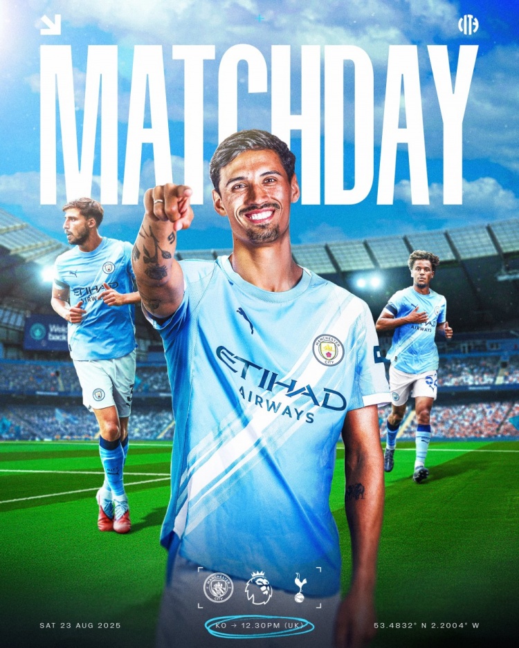 赛前,曼城官方社媒为此役发布海报,海报中赖因德斯居中,鲁本-迪亚斯、鲍勃在列。