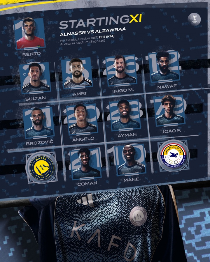 10月2日讯 北京时分凌晨2点15分,亚冠二级小组赛D组第2轮,利雅得得胜客场对阵伊拉克球队扎瓦拉体育,赛前利雅得得胜公布了首发威望,C罗迎来轮休,菲利克斯、科曼先发,马内出战。