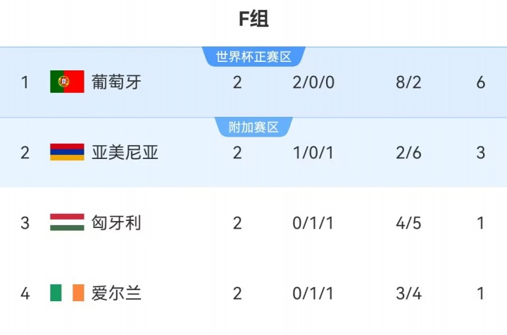 世初赛欧洲区F组积分榜↓