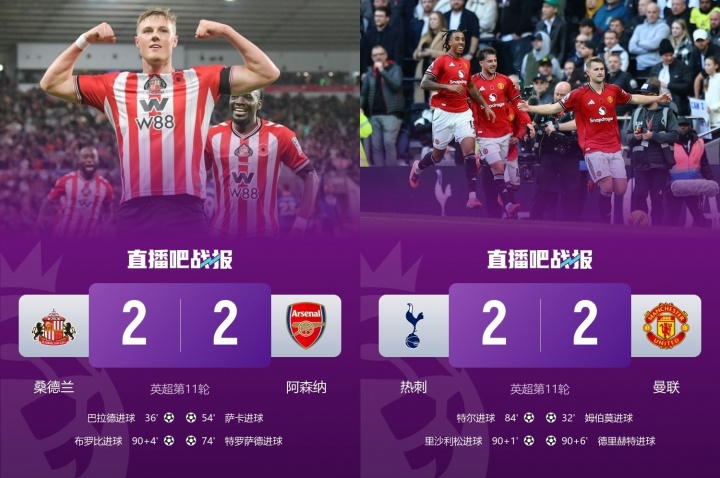 热刺与曼联的比赛先开赛,曼联1-0早先时,及时积分榜曼联升至英超第2。比赛快界限时热刺2-1早先曼联,此时是热刺排行英超第2。但这场比赛最终战平,两队赛后均没能排在第2。