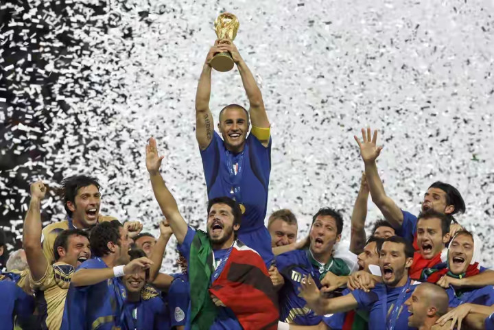 后来的罚球决胜 ,意大利赢了。卡纳瓦罗高高举起了大力神杯,四星意大利,荣誉 加身,整个亚平宁半岛都陷入了狂欢。