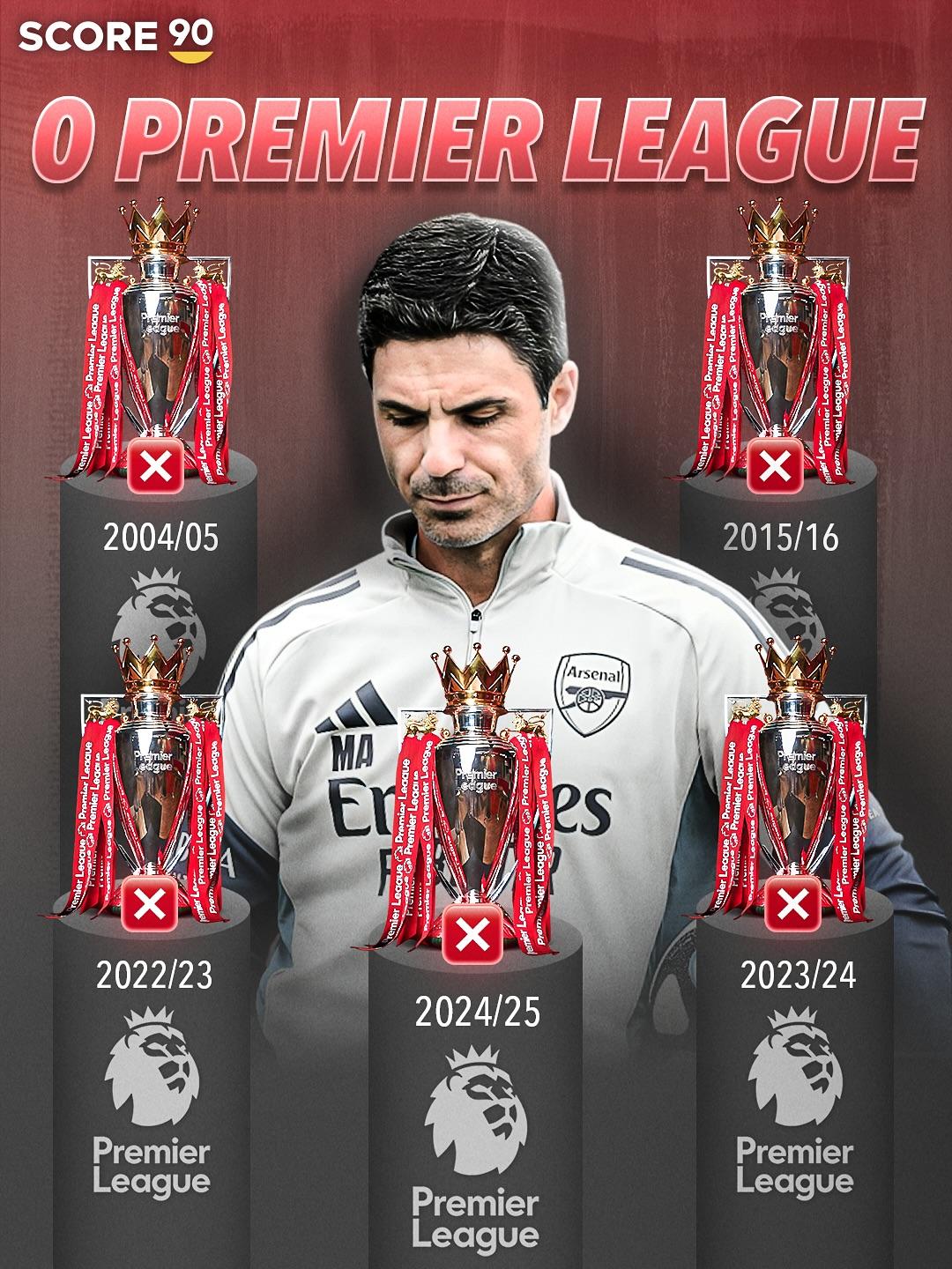 距离阿森纳前次英超夺冠已以前21年, 时辰球队五次收货亚军