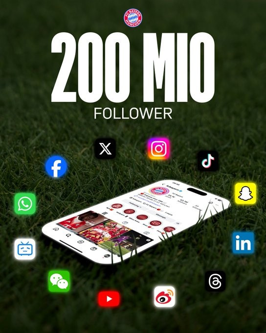 拜仁官方写谈:“拜仁慕尼黑足球俱乐部在其13个外交媒体平台上收尾了一个超卓的里程碑,如今环球超2亿粉丝,通过40多个账号,超10种说话与咱们昼夜相伴,感谢统共参与这段旅程的东谈主。”