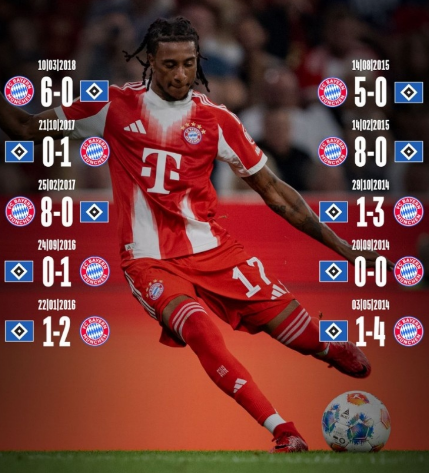 安联球场再次成为汉堡队的恶梦之地。时隔七年重返德甲的“朔方恐龙”汉堡队,在卫冕冠军拜仁慕尼黑眼前毫无还手之力,开场29分钟便四球逾期,最终吞下五球惨败。历史数据透露,汉堡对阵拜仁仍是遇到9连败,而况20场不堪。拜仁最近9次面临汉堡保捏全胜,其中最近的4个主场不仅全部零封敌手,还狂灌了敌手27个球。