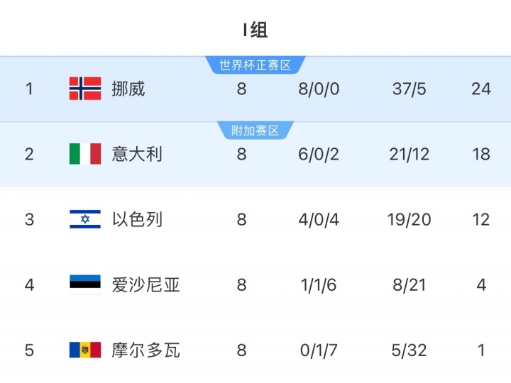 挪威和英格兰均是全胜晋级。其中前者8场轰37球丢5球,包含双杀意大利和11-1摩尔多瓦这么的经典交游;后者8场轰22球0失球,保捏着全胜的同期一球不丢。