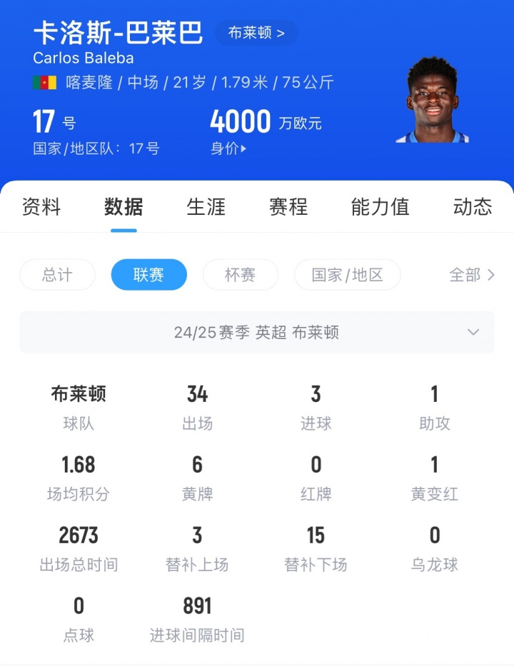 08月08日讯 据Talksport报谈,布莱顿不会在今夏出售巴莱巴,球队对他的估值和夙昔的凯塞多相同高。