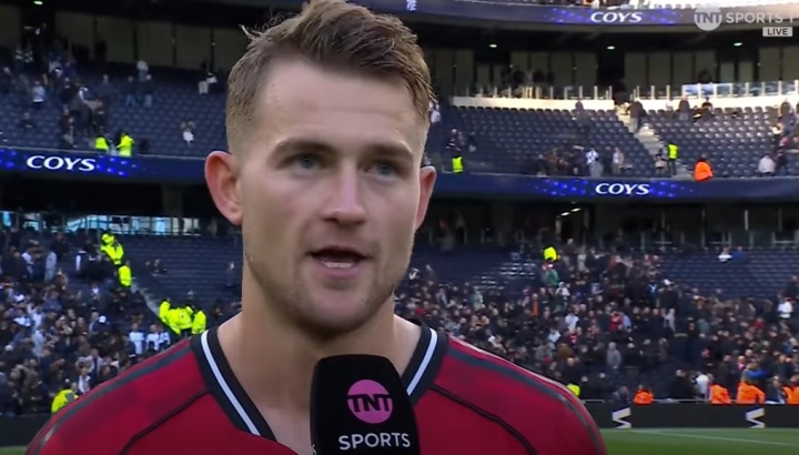 11月08日讯 曼联2-2热刺,打入绝平球的德里赫特赛后摄取采访。