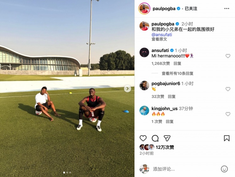博格巴社媒配文写说念:和我的兄弟在全部,嗅觉超棒!