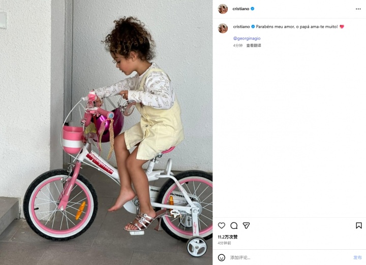 11月12日讯 今天是C罗的二犬子马蒂娜的8岁寿辰,C罗在社媒上奉上祝颂:寿辰自在,亲爱的,爸爸终点爱你!
