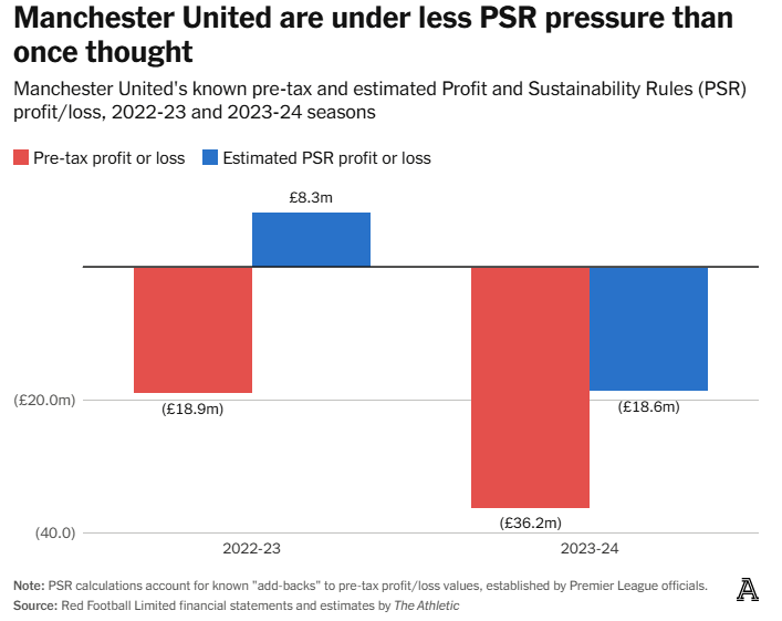 就前者而言,曼联所谓的PSR窘境最近很少被说起。正如TA在6月份显现的那样,部分原因是该俱乐部的PSR盘算推算是基于RedFootballLimited的功绩,从而剔除了PLC层面的一些大额资本,而这些资本不属于足球行为的鸿沟。