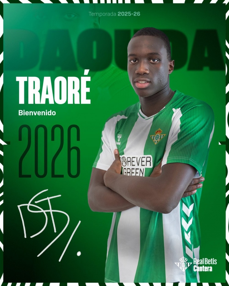 达乌达-特劳雷现年19岁,法国中场,客岁夏天从尼斯加盟南安普顿,上赛季外租瓦朗谢纳服从,共为该队出战27场法丙。今天,南安普顿官方通告,达乌达-特劳雷租赁加盟西甲贝蒂斯,租期一个赛季。
