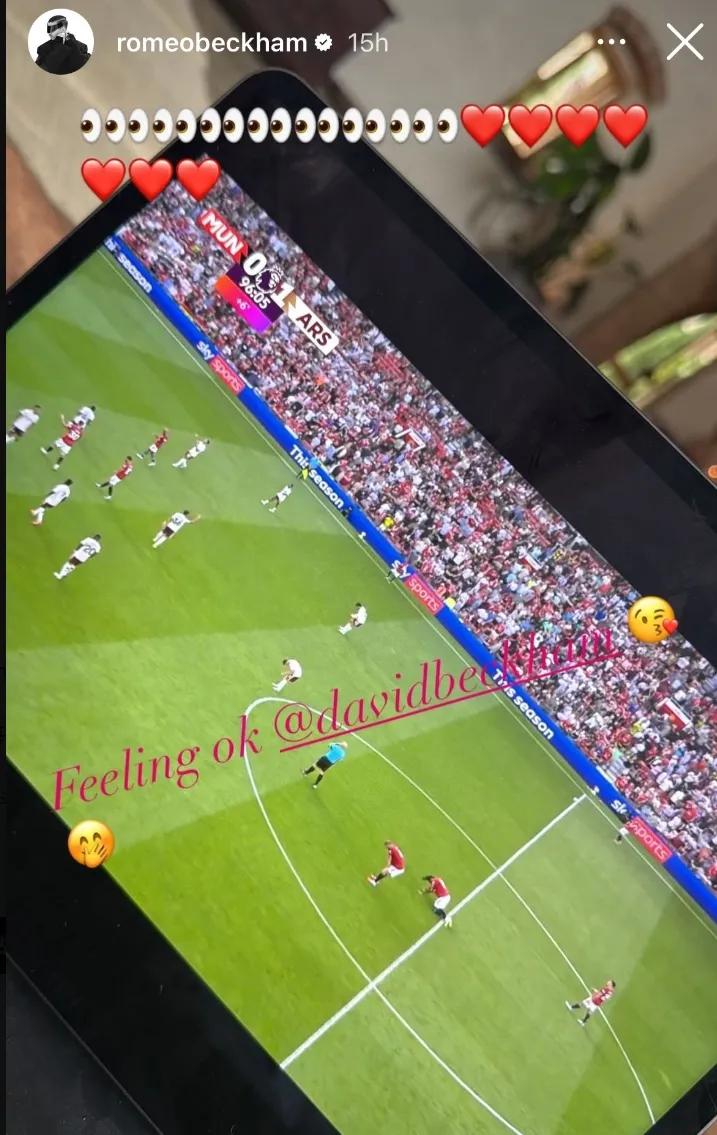 贝克汉姆的女儿罗密欧(铁杆枪迷)在IG上发布了阿森纳战胜曼联的图文,并写谈:“嗅觉还好吧,@贝克汉姆”。