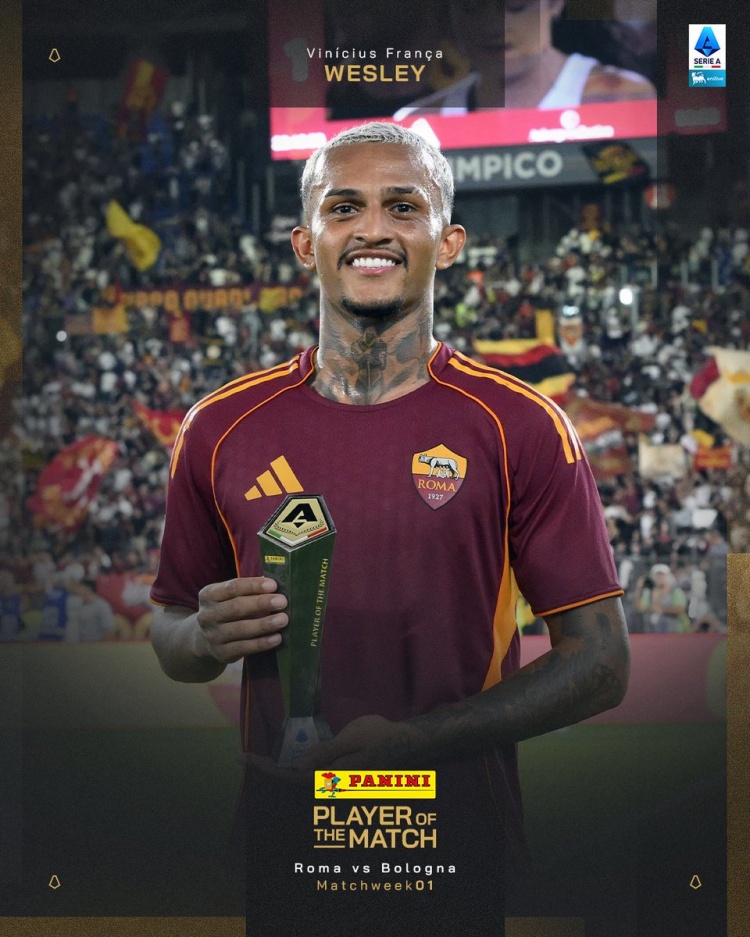 2500万新援进球!官方:罗马边卫韦斯利当选1-0博洛尼亚全场最好