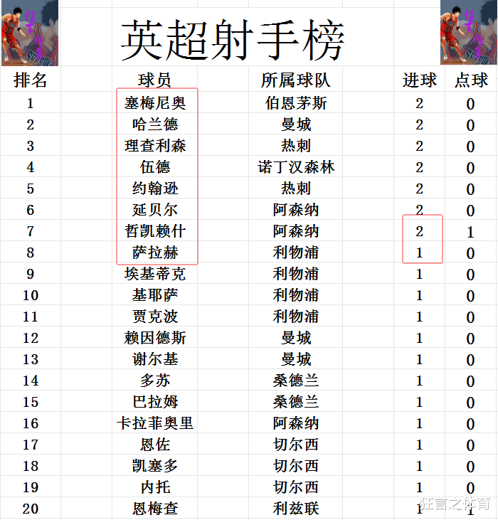 弓手榜方面,哈兰德,理查利森,伍德,约翰逊,延贝尔,哲凯赖什,塞梅尼奥等东说念主2球并排榜首,萨拉赫,基耶萨,恩佐,凯塞多等东说念主1球上榜。
