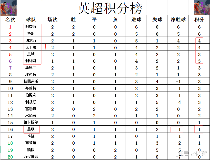 积分榜方面,阿森纳,热刺两连胜领跑,阿森纳一个净胜球位列榜首,热刺紧随自后,诺丁汉丛林1胜1平杰出曼城,利物浦,净胜球波折排在切尔西之后。曼联2轮不堪只拿到1分,排行从上轮的地15跌到第16。