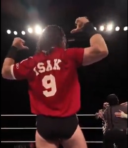 贴脸开大摔角手向纽卡不雅众展示利物浦球衣, 印号是9号伊萨克