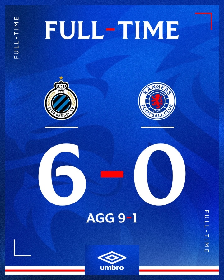 格拉斯哥流浪者:两回合1:9不敌布鲁日