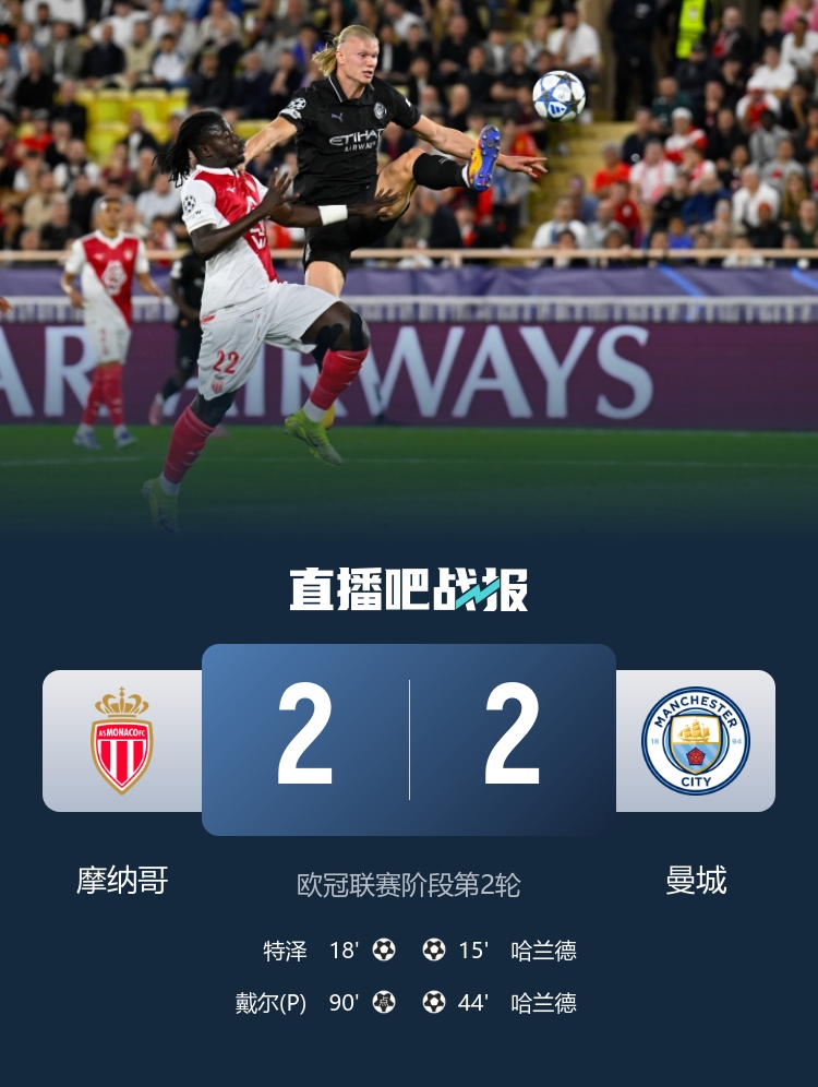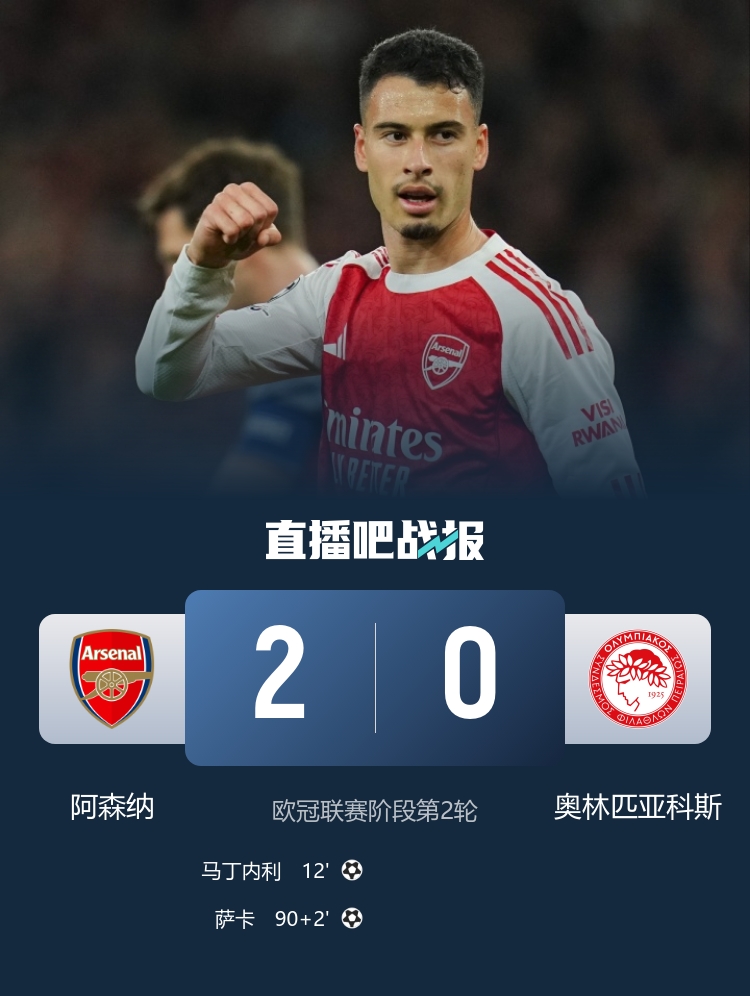 今天的欧冠,阿森纳2-0奥林匹亚科斯,曼城2-2遭摩纳哥绝平,纽卡4-0大捷圣吉罗斯。