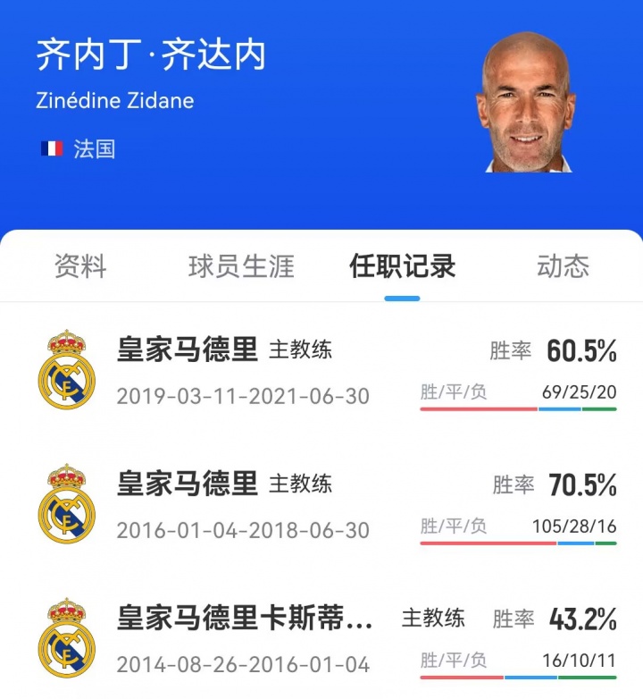 王人达内2021年再度卸任皇马主帅一职后便一直休闲,他曾携带皇马得回欧冠冠军、西甲冠军等多项荣誉。