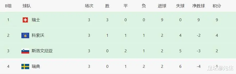 瑞典果然排在小组末位。不敌瑞士,斯洛文尼亚也就遣散,连科索沃齐打不外,这照旧瑞典吗?赛程过半,瑞典3战1平2负只拿到1分,念念高出瑞士拿到小组头名径直晋级,近乎痴东说念主说梦。即就是拿到小组第二争取到附加赛限额,齐极其贫窭。是以,关于昔日的寰球杯常客来说,咫尺最窘态的如故不是极有可能缺席2026寰球杯了,而是,从咫尺的情况看,他们有可能创造近百年来,队史最差世初赛收获。21世纪以来,瑞典偶有缺席寰球杯的纪录,但每次齐很接近,世初赛收获谈不上很差。比如2022年寰球杯预选赛,他们打到了附加赛,最终被波兰淘汰。2014年寰球杯预选赛,他们不异打进附加赛,最终,伊布在和C罗的径直叛逆中败下阵来。2010年寰球杯瑞典也缺席,但世初赛他们取得小组第三。而那本领,一个小组至少有五六个球队。是以,近20多年来,瑞典辞世初赛一直保捏着可以的竞争力,即使打不进寰球杯,也距离到手不远。而上世纪,瑞典辞世初赛上,也基本保捏着这么的水准。其中较差的,是1954年寰球杯预选赛,那时瑞典和比利时,芬兰同组,其中,和芬兰打了两场。最终瑞典的收获是1胜1平2负,位列第二,压住了芬兰,但目送比利时晋级。